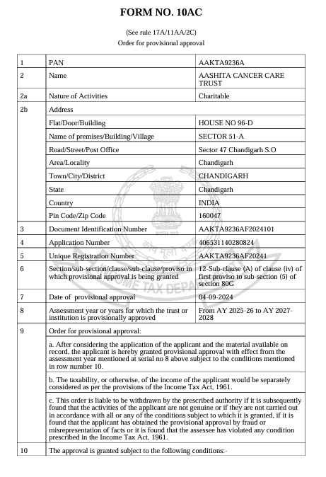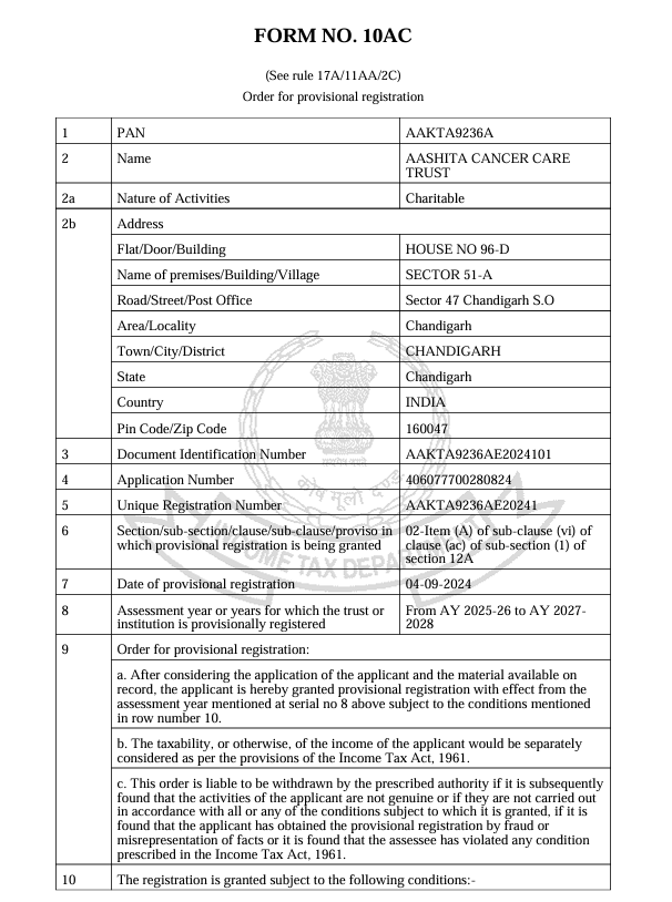 their families. His personal experience has fueled his determination to make a positive impact and create a lasting legacy through the Aashita Cancer Care Trust.